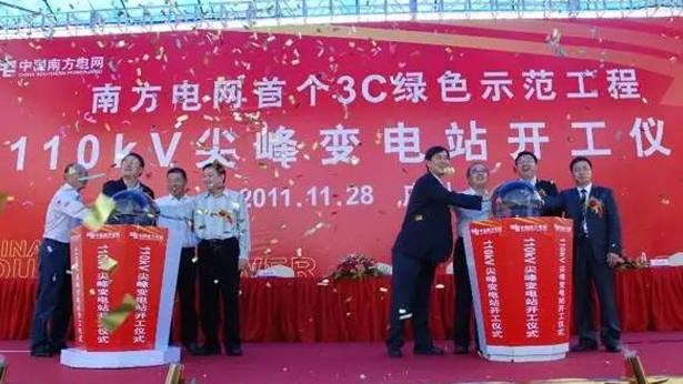 南方电网首个3C绿色示范工程——广州110kV尖峰变电站,地处广州市萝岗区科学城开创大道以西、科学大道以北处,主变容量3×63MVA,110kV出线3回,10kV出线45回。该站于2011年11月28日正式开工建设,2012年11月26日顺利投运。正超是该站10kV金属铠装移开式开关柜(电动型)的唯一供货企业。广州110kV尖峰变电站的成功投运,标志着南方电网建设3C绿色变电站的开始,也是正超发展一个新的里程碑。