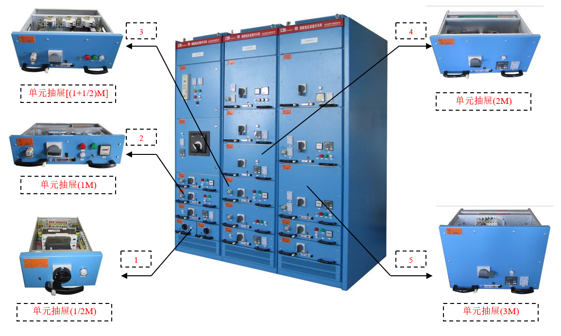 设备采用拼接和局部焊接组装而成,设备各隔室(包括:母线室、电缆室、小母线室、功能器件室)之间均采用金属钢板分隔。抽屉单元具有明显的“连接”、“试验”、“分离” 位置和锁定装置,可确保设备运行及维护人员的安全。
