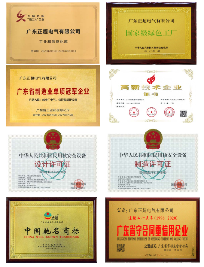 正超是专业从事智能开关设备、核安全电气设备、新能源设备研发设计、制造、服务,是国家级专精特新“小巨人”企业、国家级绿色工厂,是中国环境保护产业协会会员单位、广东省降碳减污特色案例企业,坚持以科技创新引领产业创新,注重科技创新和产业创新深度融合,积极培育和发展新质生产力,打造绿色高端产品和品牌